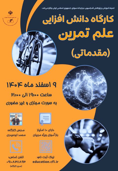 کارگاه علم تمرین (مقدماتی) توسط کمیته آموزش و پژوهش فدراسیون دوچرخهسواری در زمستان سال جاری برگزار میشود. به گزارش روابط عمومی فدراسیون دوچرخهسواری، کارگاه علم تمرین (مقدماتی) با تدریس محمد