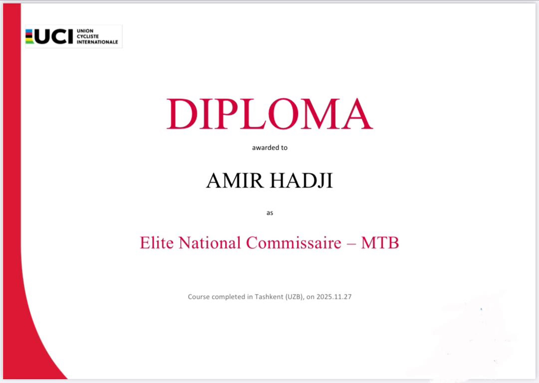 فدراسیون جهانی دوچرخهسواری (UCI) طی نامه رسمی به فدراسیون دوچرخهسواری ایران، نتیجه قبولی امیر حاجی در دوره بینالمللی داوری «الیت کوهستان» را تأئید نمود.
