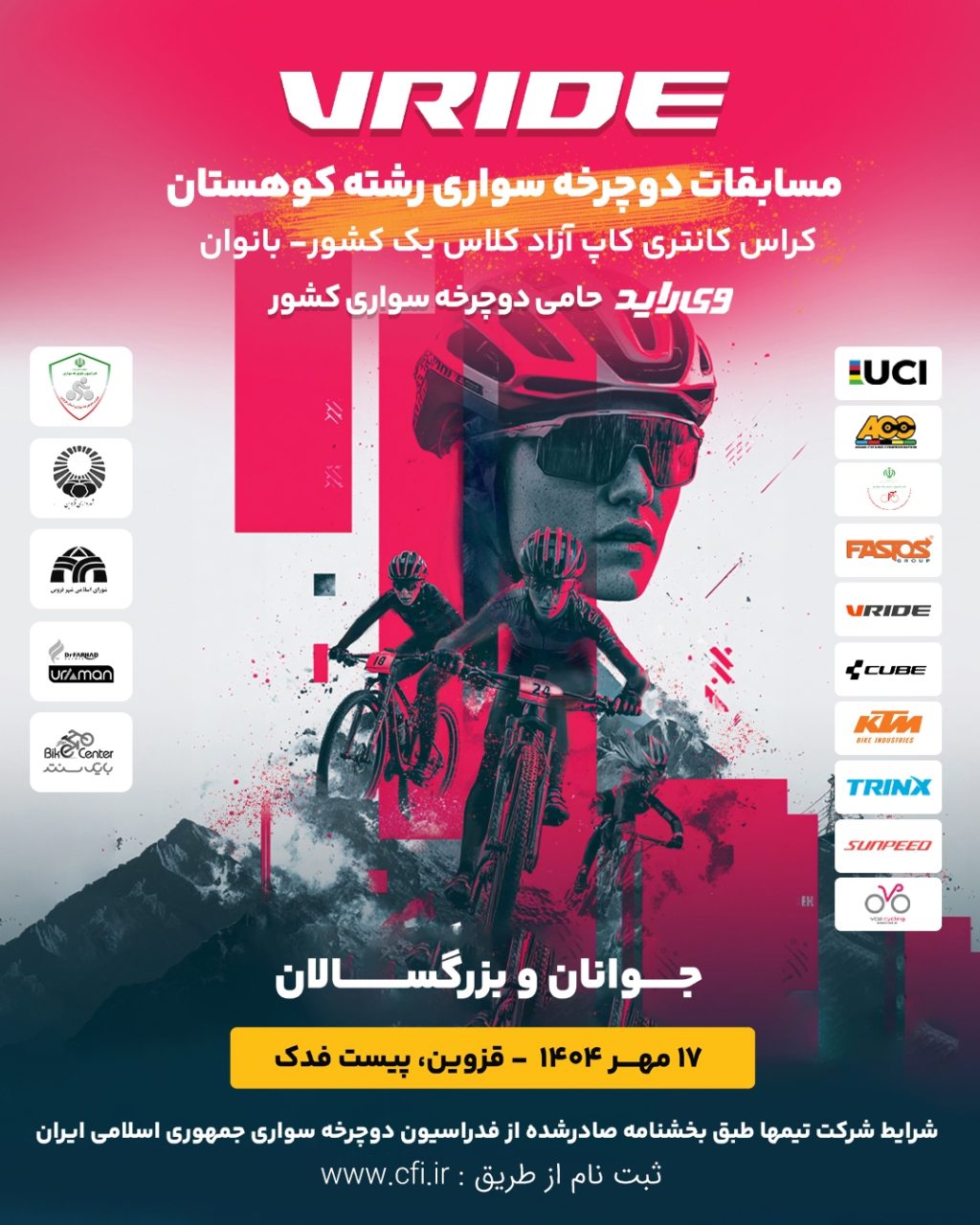 به گزارش روابط عمومی فدراسیون دوچرخهسواری، مسابقات جام آزاد کشوری کوهستان – کراس کانتری بانوان (جوانان و بزرگسالان) در ماه جاری به میزبانی استان قزوین برگزار خواهد شد.